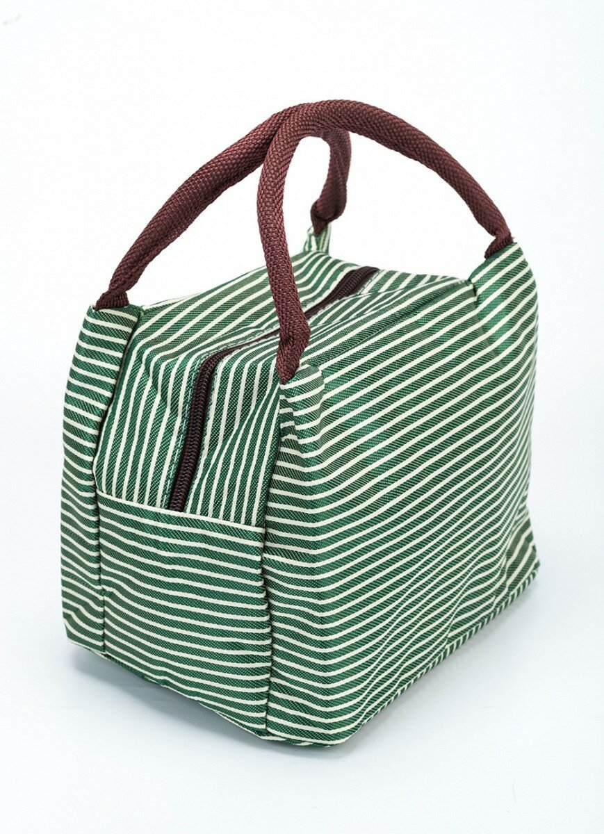 Термосумка для ланч-бокса в полоску - Горячий обед, зеленая