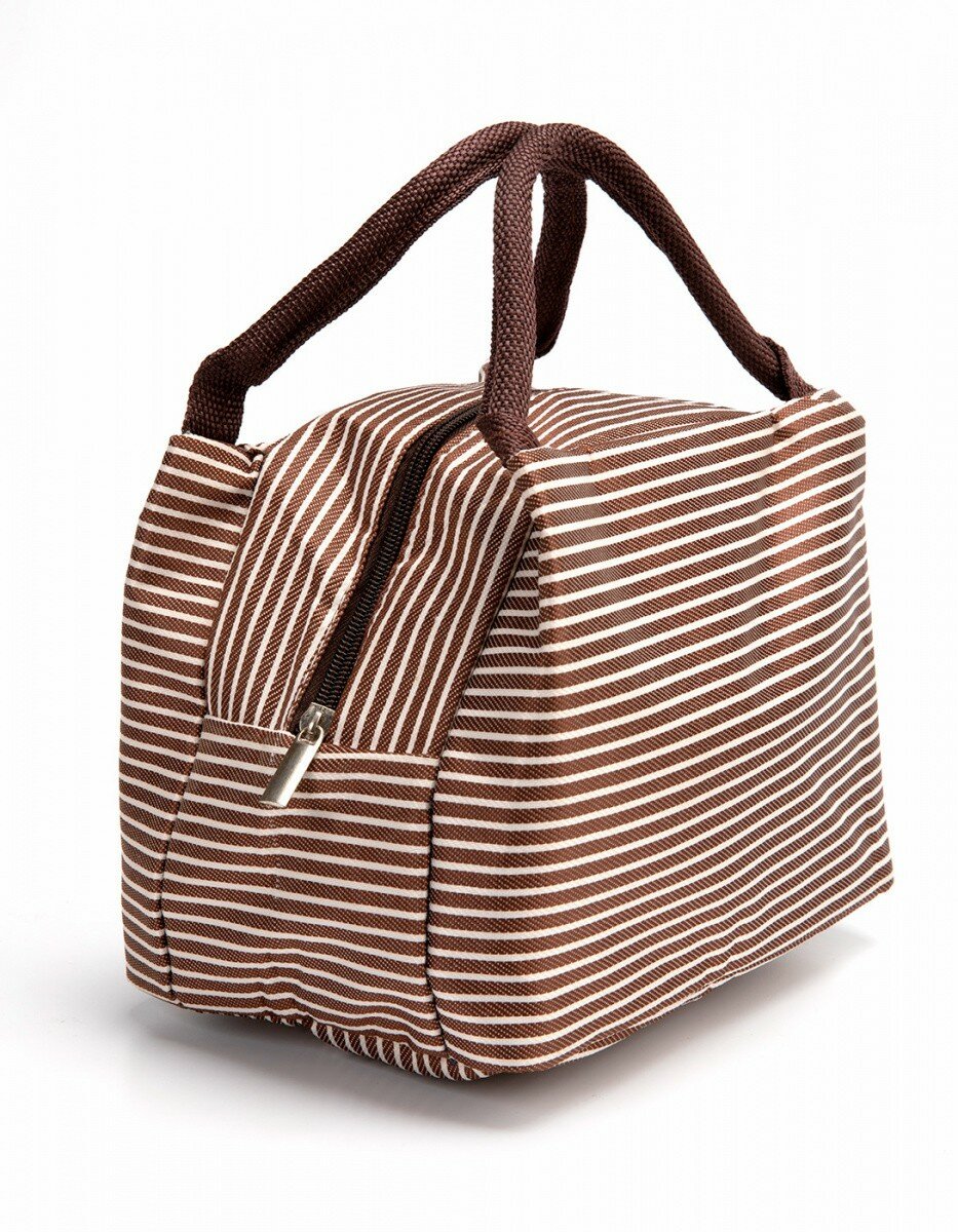 Термосумка для ланч-бокса в полоску «горячий обед» коричневая Bradex TK 0265