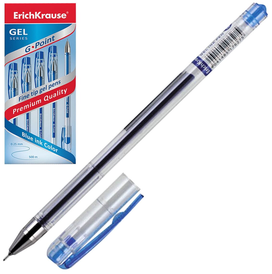 Ручка гелевая ErichKrause G-Point, чернила синие, узел 0.38 мм, длина линии письма 500 метров./В упаковке шт: 12