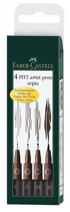 Купить Набор капиллярных ручек Faber-Castell "Pitt Artist Pen" темная сепия, 4 шт., 0,3/0,5/0,7 мм/Brush