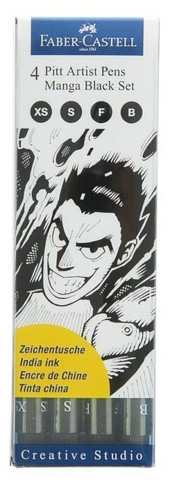 Набор капиллярных ручек Faber-Castell "Pitt Artist Pen Manga Black set" черные, 4шт., 0,1/0,3/0,5мм