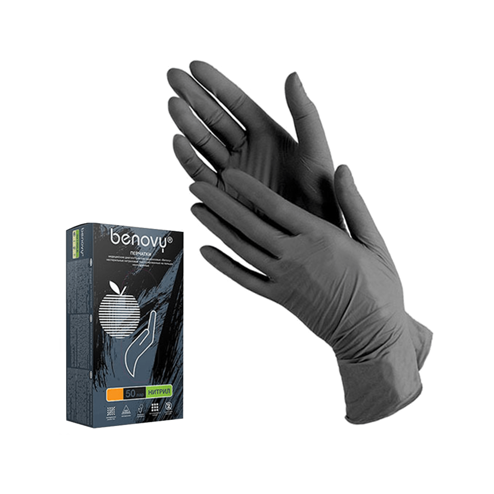 Benovy Перчатки черные нитриловые медицинские 100шт (50 пар) , размер M