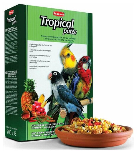 Корм Padovan TROPICAL PÂTÉE дополнительный для средних попугаев (700г)