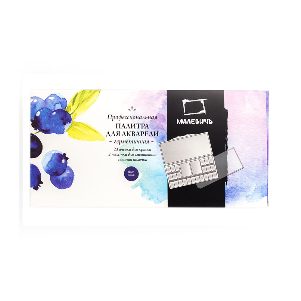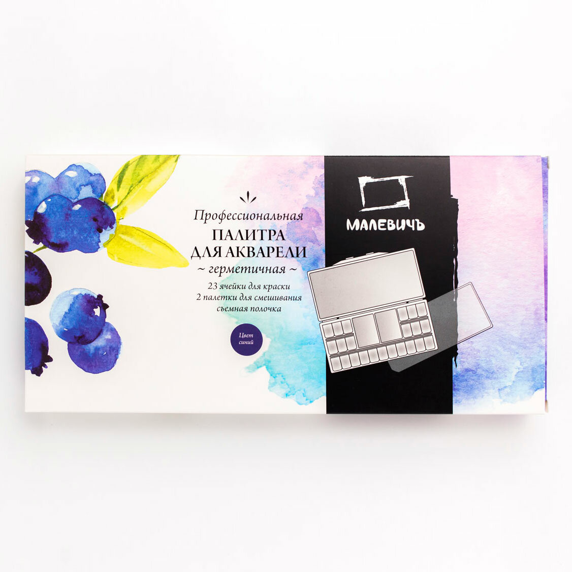 Палитра Малевичъ для акварели профессиональная герметичная, 23 ячейки, синяя, 15,8х32 см