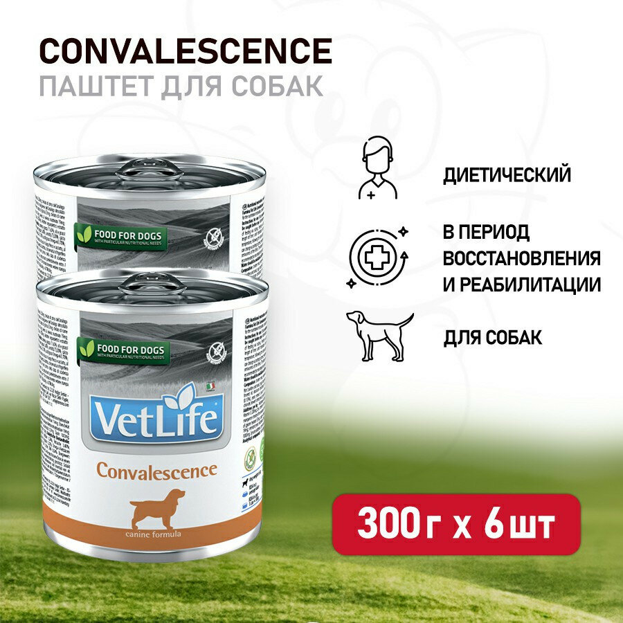 Влажный диетический корм в период выздоровления и реабилитации, паштет, для собак, Farmina Vet Life Natural Diet Convalescence, упаковка 6 шт х 300 г