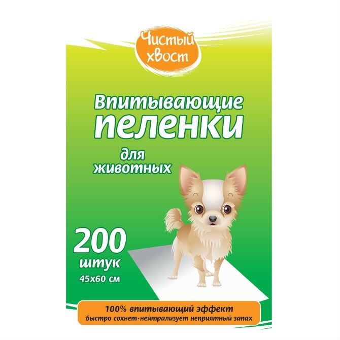 Чистый хвост пеленки впитывающие для животных, 60 х 45 см (200 шт)