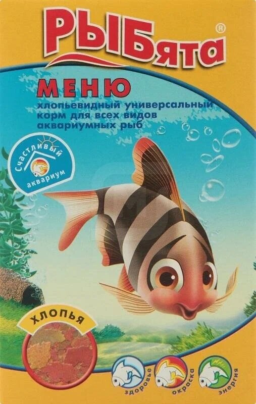 Корм для рыб рыбята меню хлопья + сюрприз!
