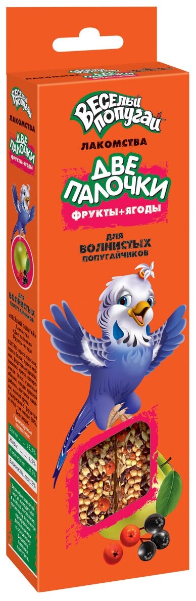 Купить Зоомир "Веселый попугай" "две палочки"(фрук.+ягод) для волнистых попугайчиков 70 г