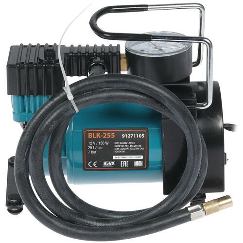 Bort BLK-255 Компрессор автомобильный [91271105] { 25 л/мин, 7 бар, 12 В, 150 Вт, 5000 об/мин, 1.6 кг, набор аксессуаров 6 шт }