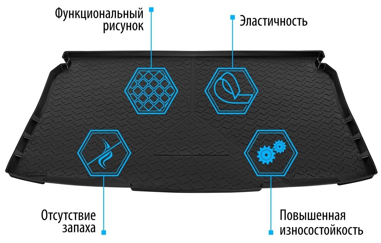 RIVAL 14703002 Коврик автомобильный в багажник Renault Sandero I, II хэтчбек 2009-2018 2018-н.в./Sandero Stepway I, II хэтчбек 2010-2018 2018-н.в., полиуретан 1шт