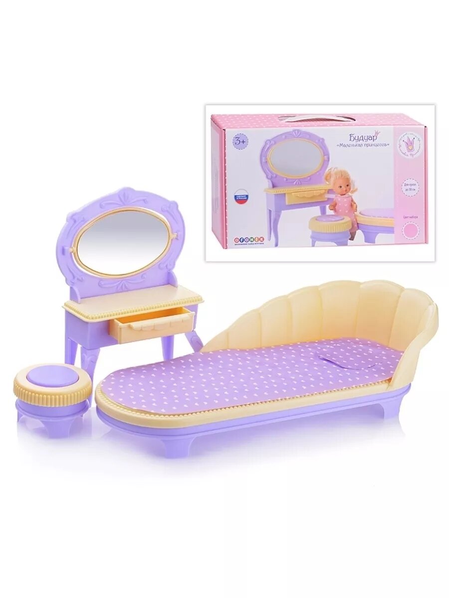 Набор мебели для кукол "Будуар"Маленькая принцесса" (трюмо, тахта, пуф), цвет: розовый