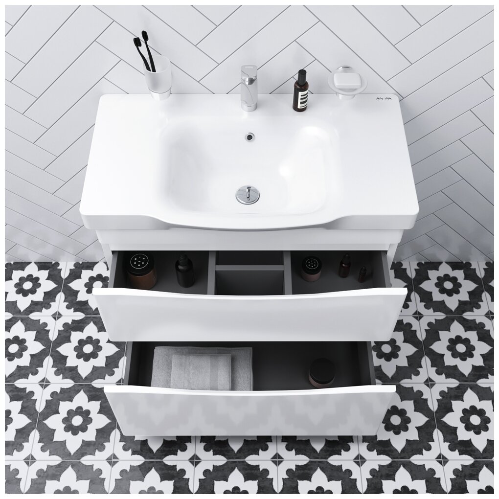 Тумба под раковину AM.PM Like M80FSX0802WG 80 см, белый глянец, напольная, 2 ящика, Германия