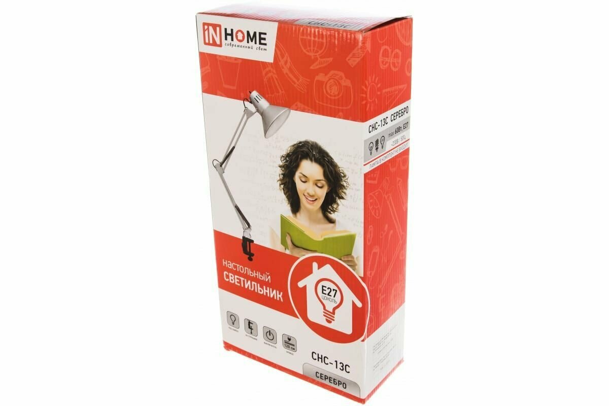 Купить Светильник настольный под лампу СНС-13С на струбцине 60Вт E27 серебр. (коробка) IN HOME 4690612012889 ( 1шт. )