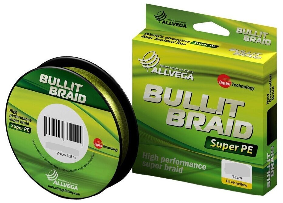 Шнур Bullit Braid Allvega 135м, 0,20 мм, 13.7 кг, желтая