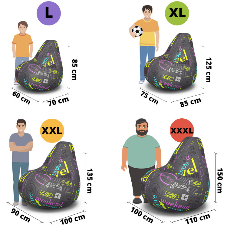 Кресло-мешок «Груша», XL, жаккард, Мумбо