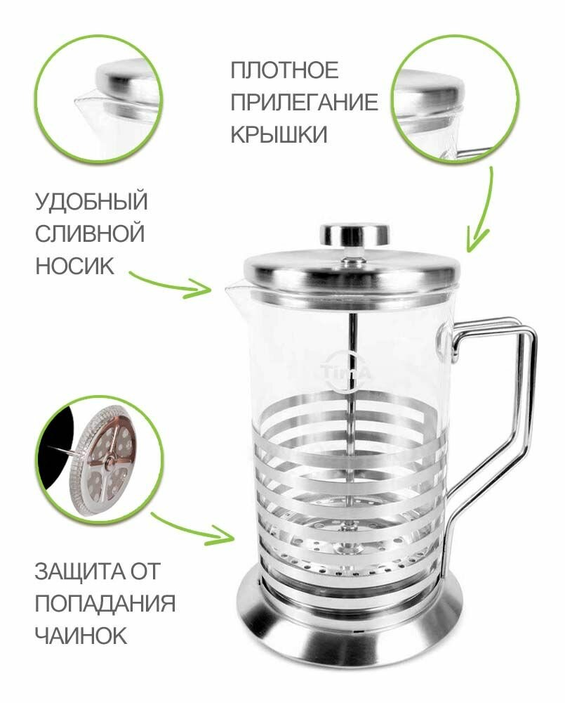 Френч-пресс Tima "наполеон" 350мл. нержавеющая сталь, боросиликатное стекло.