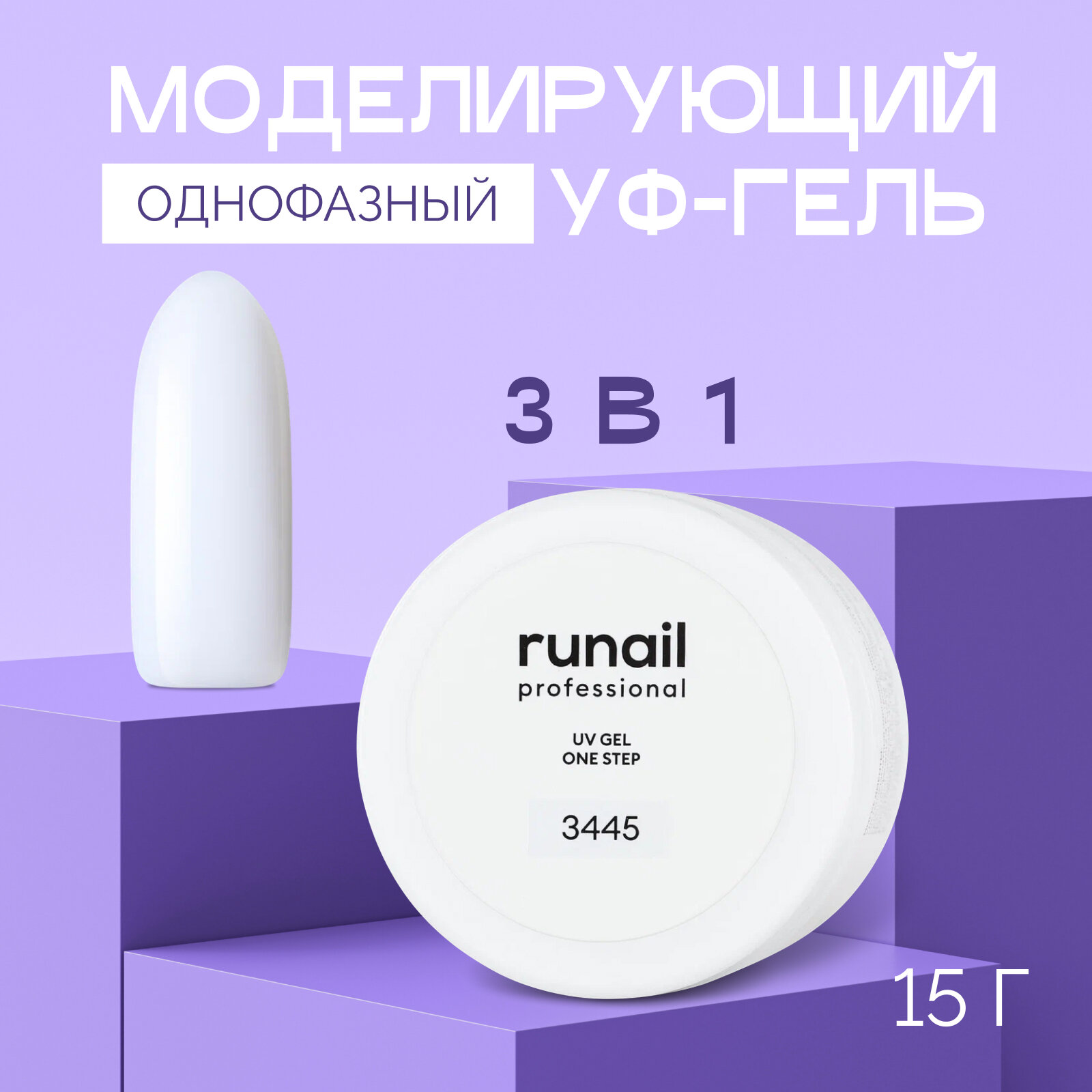 RUNAIL, Однофазный УФ-гель, белый, 15 г, №3445