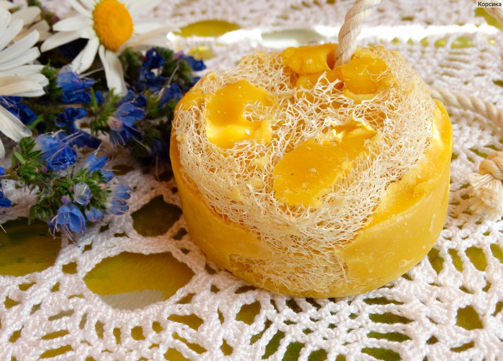 Клеона Натуральное мыло с люфой на веревке "Апельсин" для глубокого очищения кожи и пор, 130 г