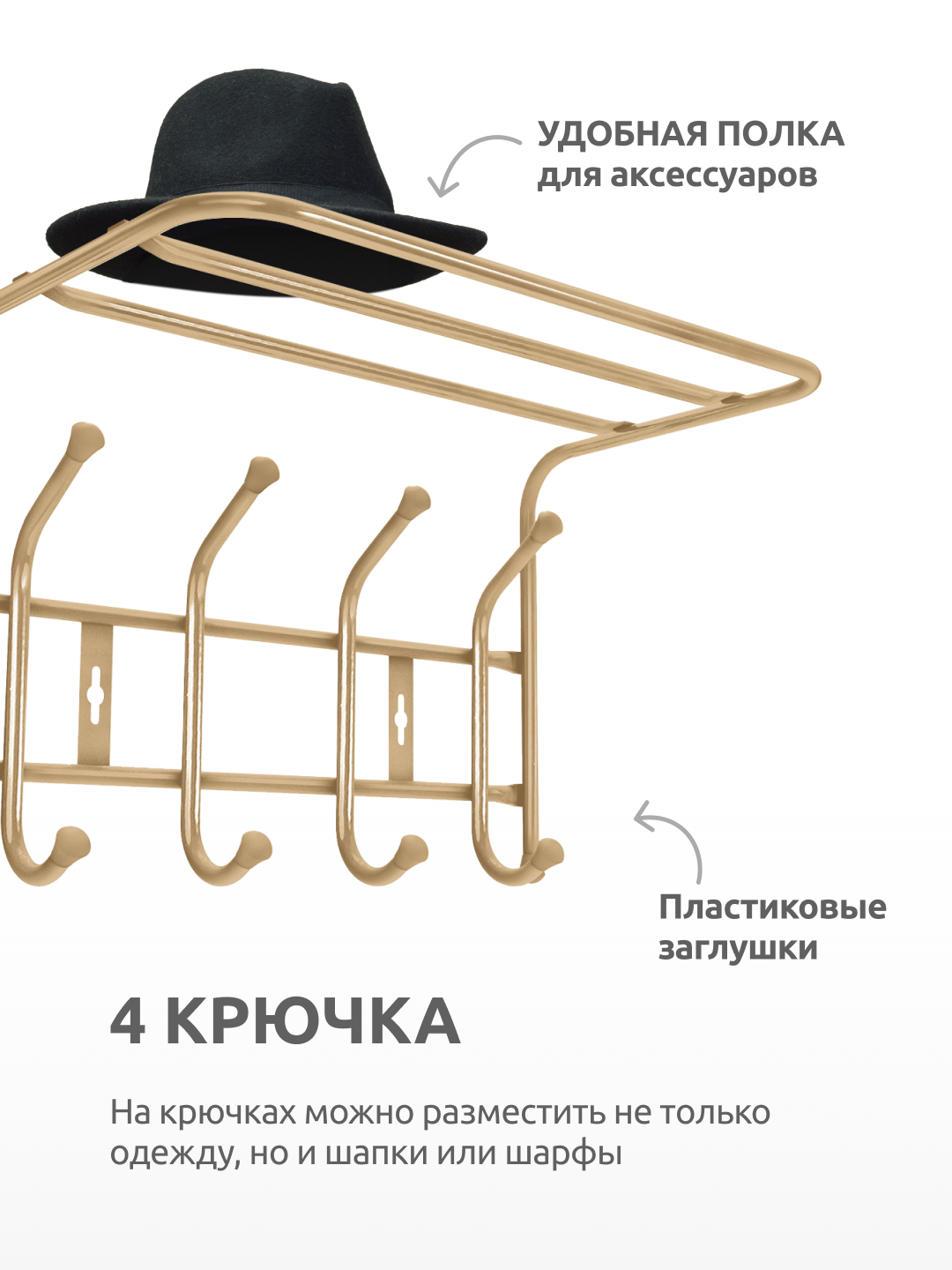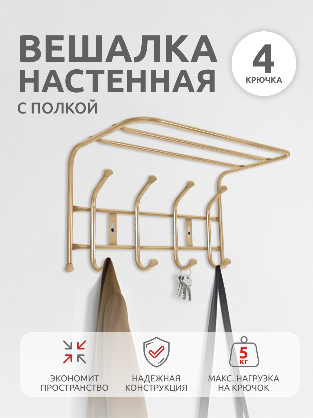 СохранитьВешалка с полкой настенная металлическая на 4 крючка ВП4 золотой интересное: