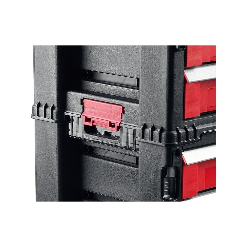 | Отзыв: | Ящики пластиковые, также как и направляющие по которым они выдвигаются, поэтому "бесконечно" нагрузить конструкцию не получится, если это понимать, то весьма функциональный способ хранения инструмента и крепежа.