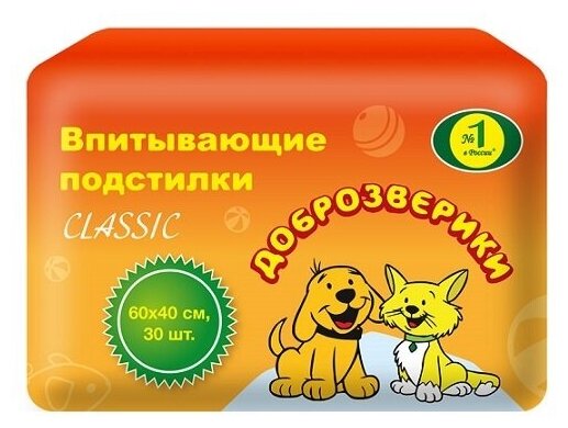 Доброзверики CLASSIC пеленки впитывающие для животных, 40 х 60 см (60 шт)