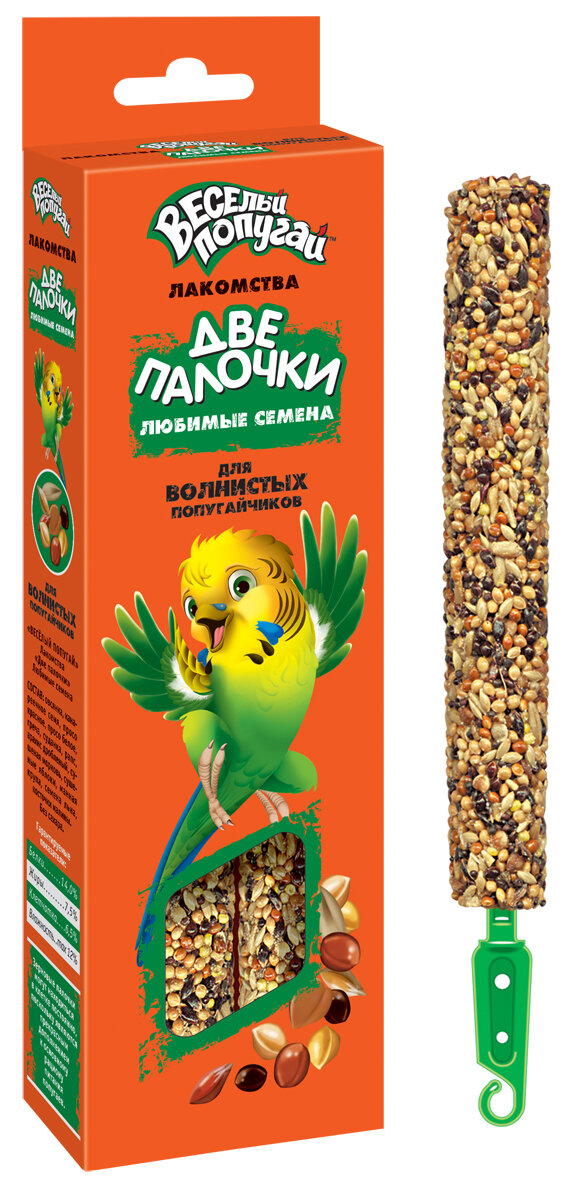 Веселый попугай Лакомство Две палочки Любимые семена для волнистых попугаев, 70 г