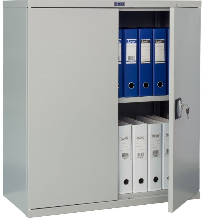 Шкаф офисный металлический для документов практик СВ-21, 2 двери, 1 полка, с ключевым замком, ВхШхГ: 1000х1000х500 мм