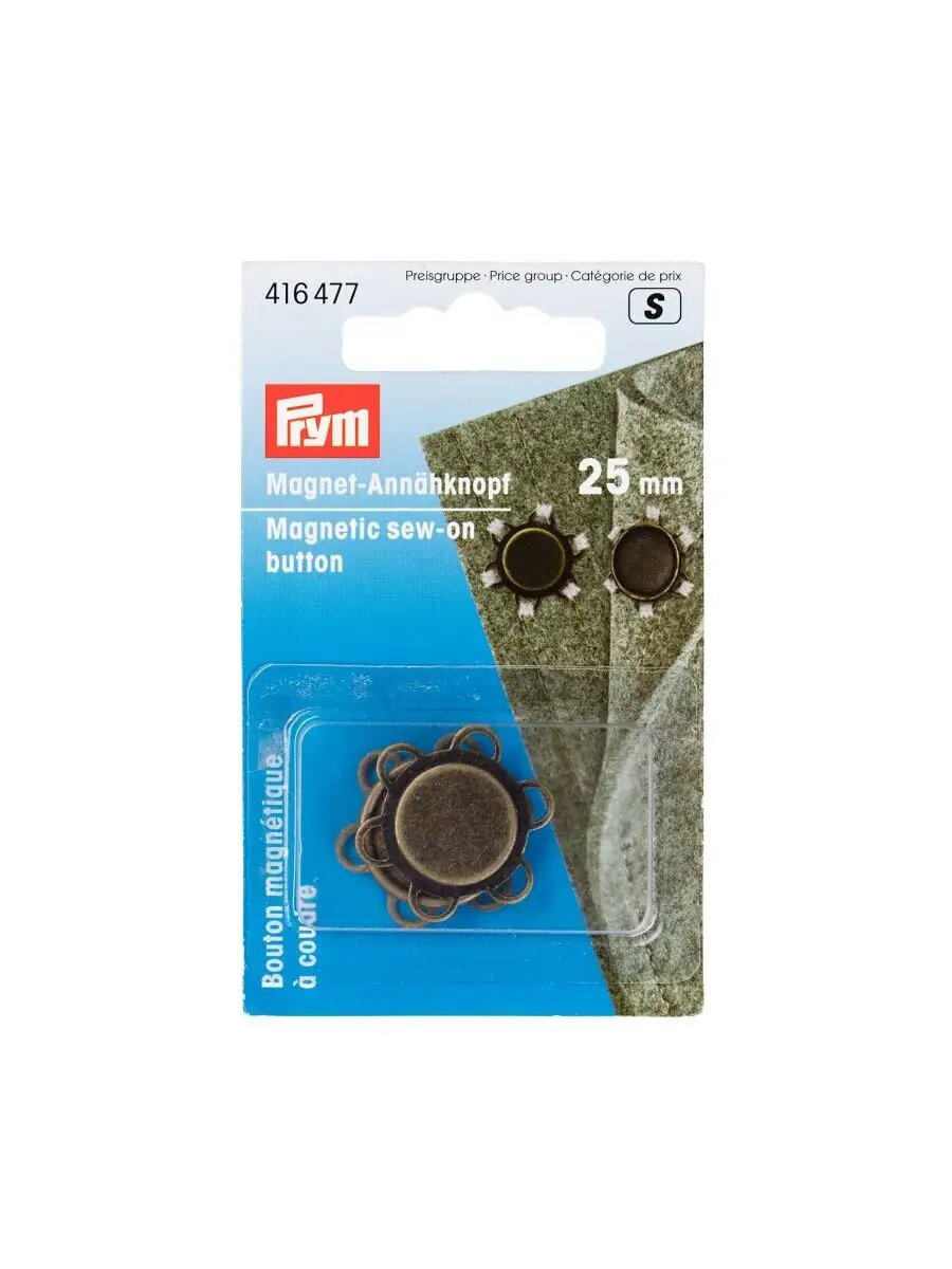Пуговица PRYM Магнитная, пришивная, металл, под состаренную латунь, 25 мм, в блистере (416477)