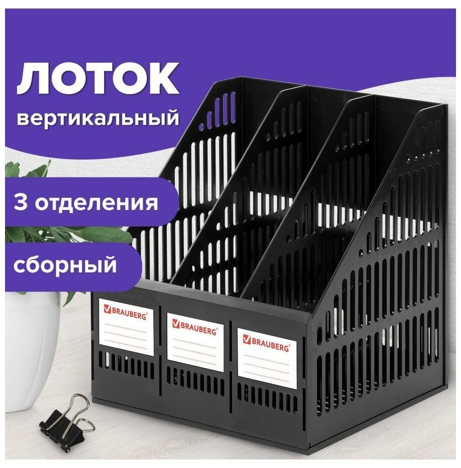 Лоток вертикальный для бумаг BRAUBERG "SMART-MAXI" (254х255х297 мм), 3 отделения, сетчатый, сборный, черный, 231525 (цена за 1 ед.товара)