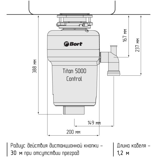Измельчитель пищевых отходов Bort TITAN 5000, Control
