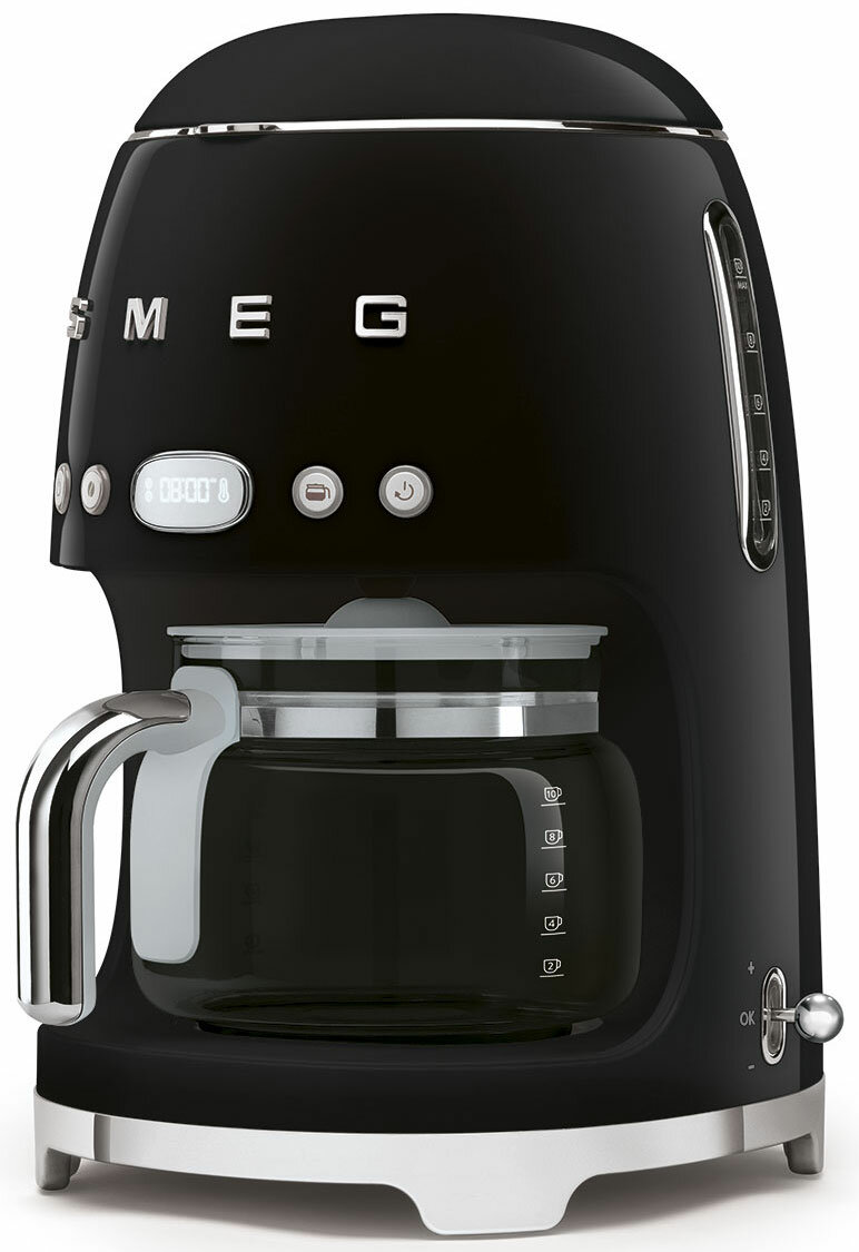 Капельная кофеварка SMEG/ стиль 50-х годов, 10 чашек, 1.4 л, черная