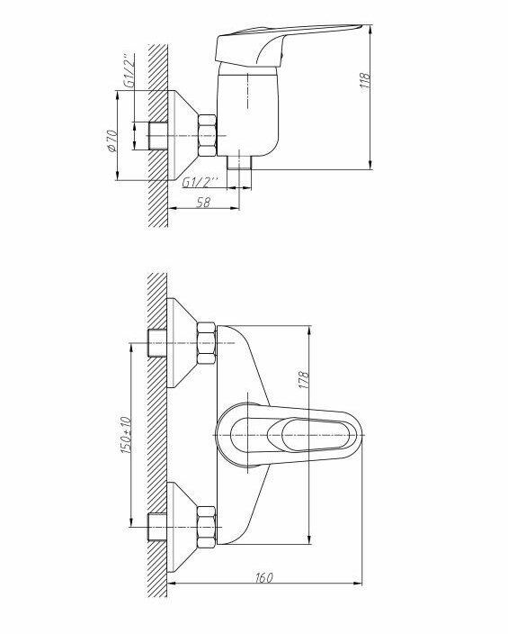 Смеситель для душа без излива хром HB2004