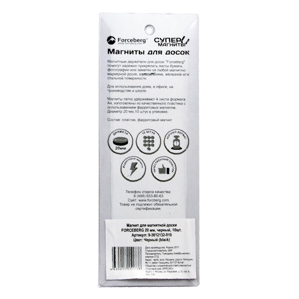 Купить Магнит для магнитной доски FORCEBERG 20 мм, черный, 10шт.