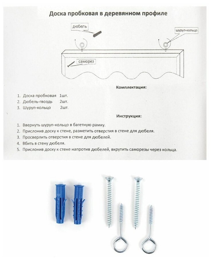 | Плюсы: | Хорошая, обычная пробковая доска. Крепления в комплекте |