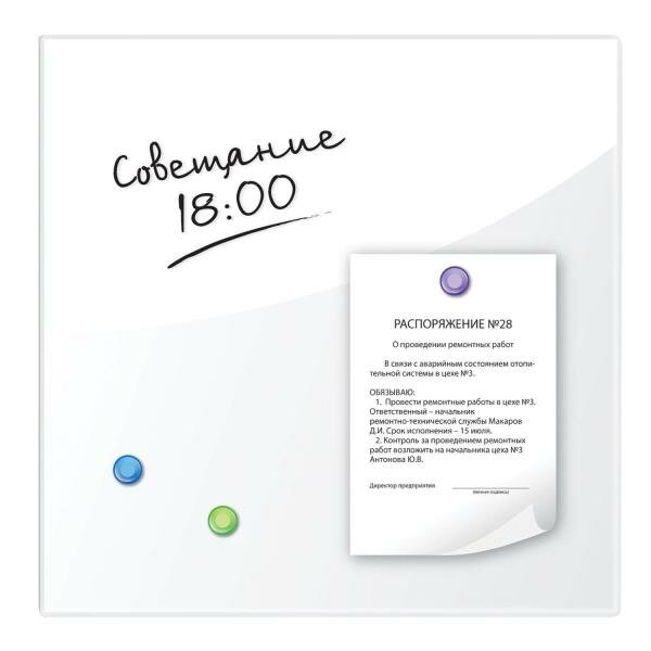 Доска магнитно-маркерная стеклянная (45×45 см), 3 магнита, белая, BRAUBERG
