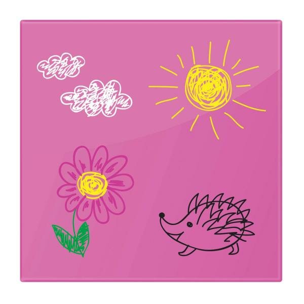 | Плюсы: | Очень красиво смотрится, интереснее, чем привычные металлические доски. Маркер не впитывается в стеклянную поверхность, можно надолго оставлять записи. Ребенок использует вместо черновика для промежуточных расчетов. |
