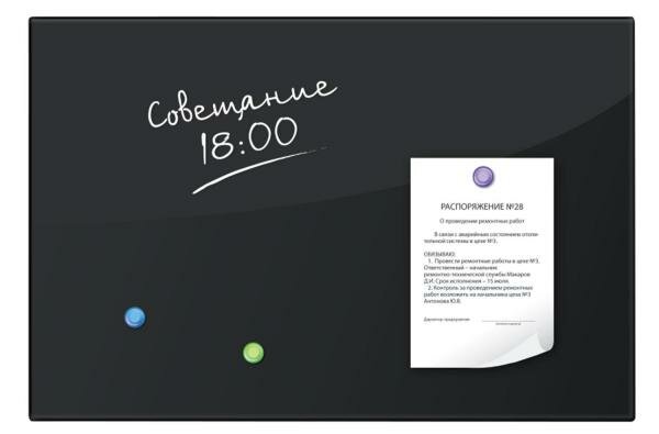 Доска магнитно-маркерная стеклянная Brauberg черная, 40х60 см, 3 магнита
