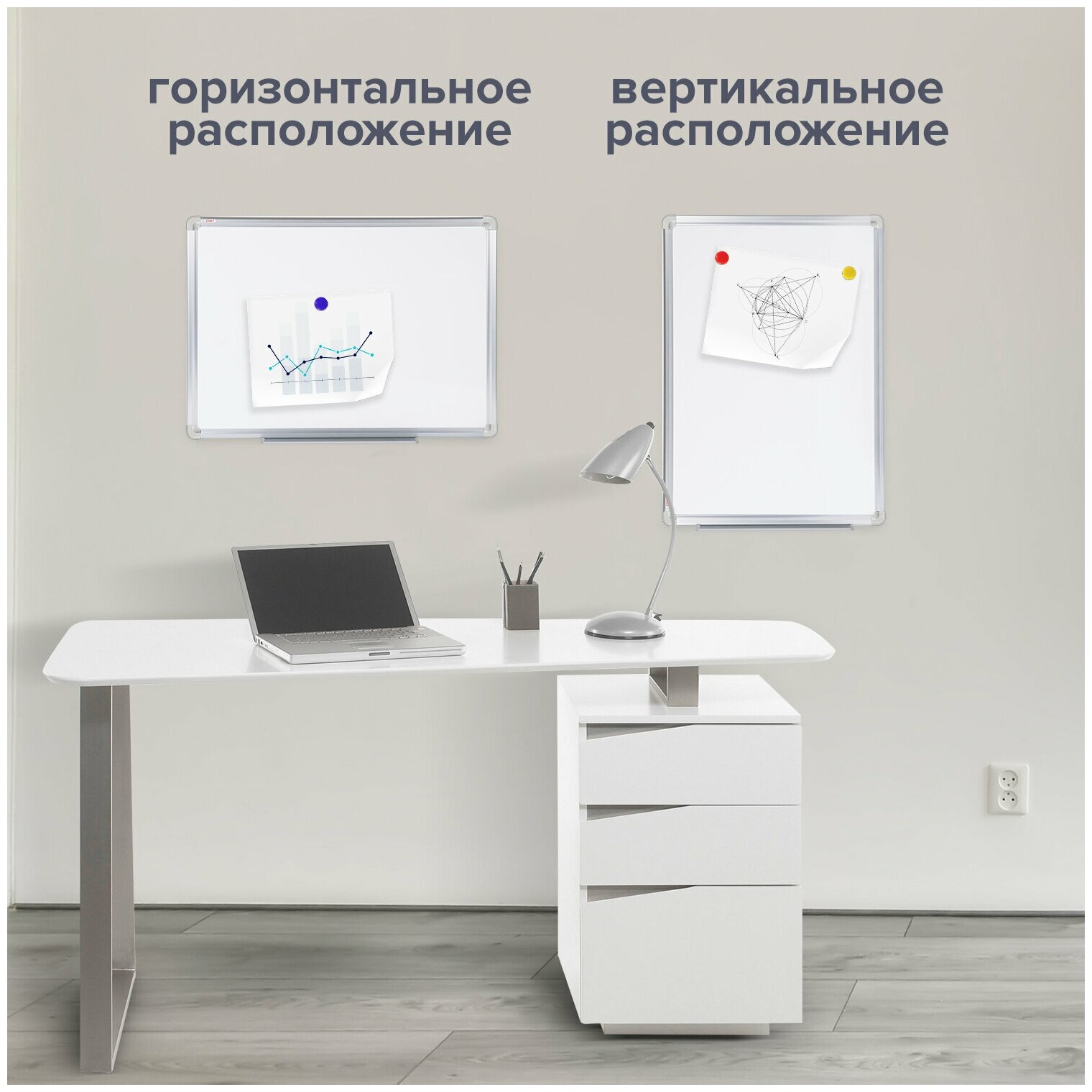 Доска демонстрационная магнитно-маркерная на стену для офиса и дома, 45х60 см, алюминиевая рамка, гарантия 10 лет, Staff, 235461