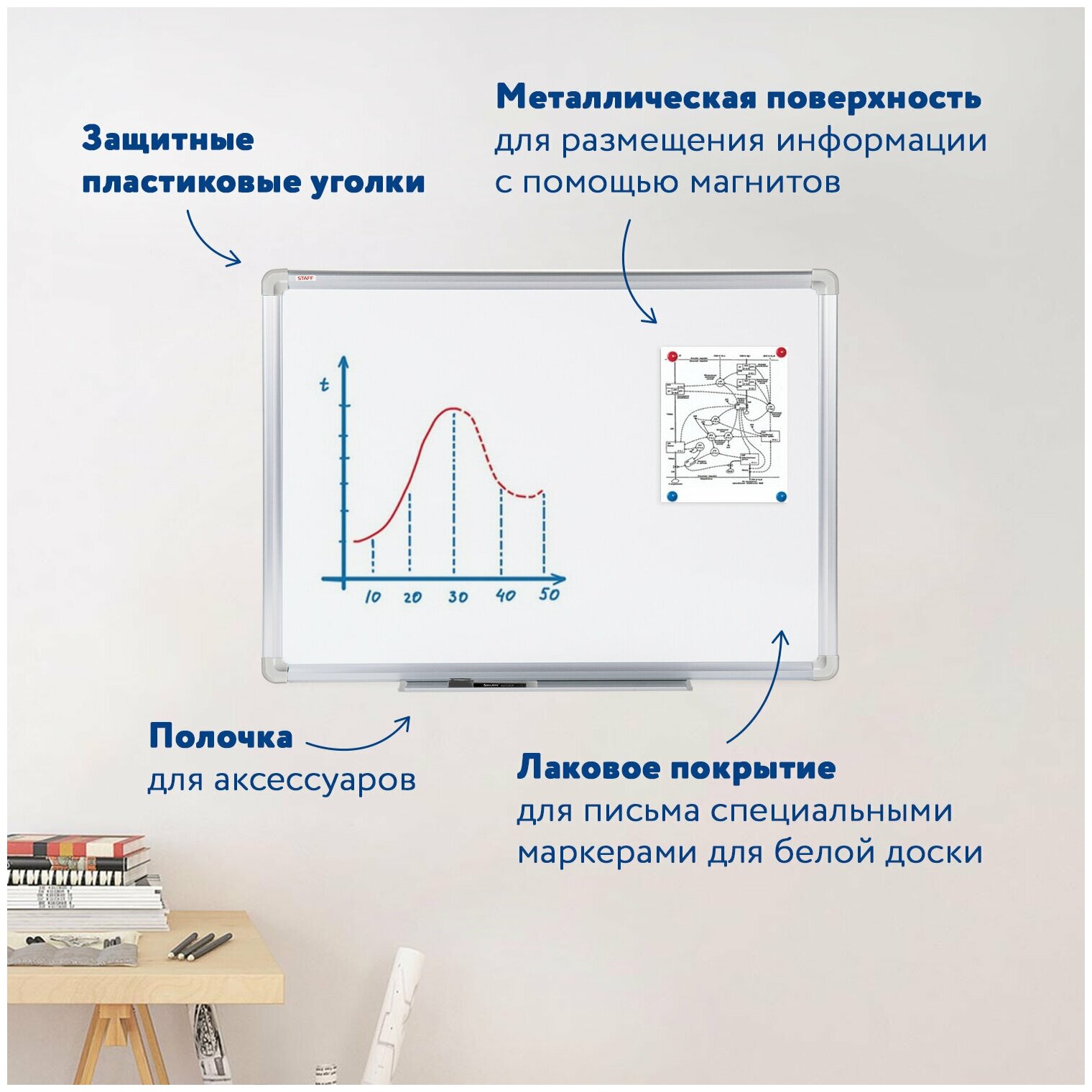 Доска магнитно-маркерная 45х60 см, алюминиевая рамка, гарантия 10 ЛЕТ, STAFF, 235461 - 1 шт.