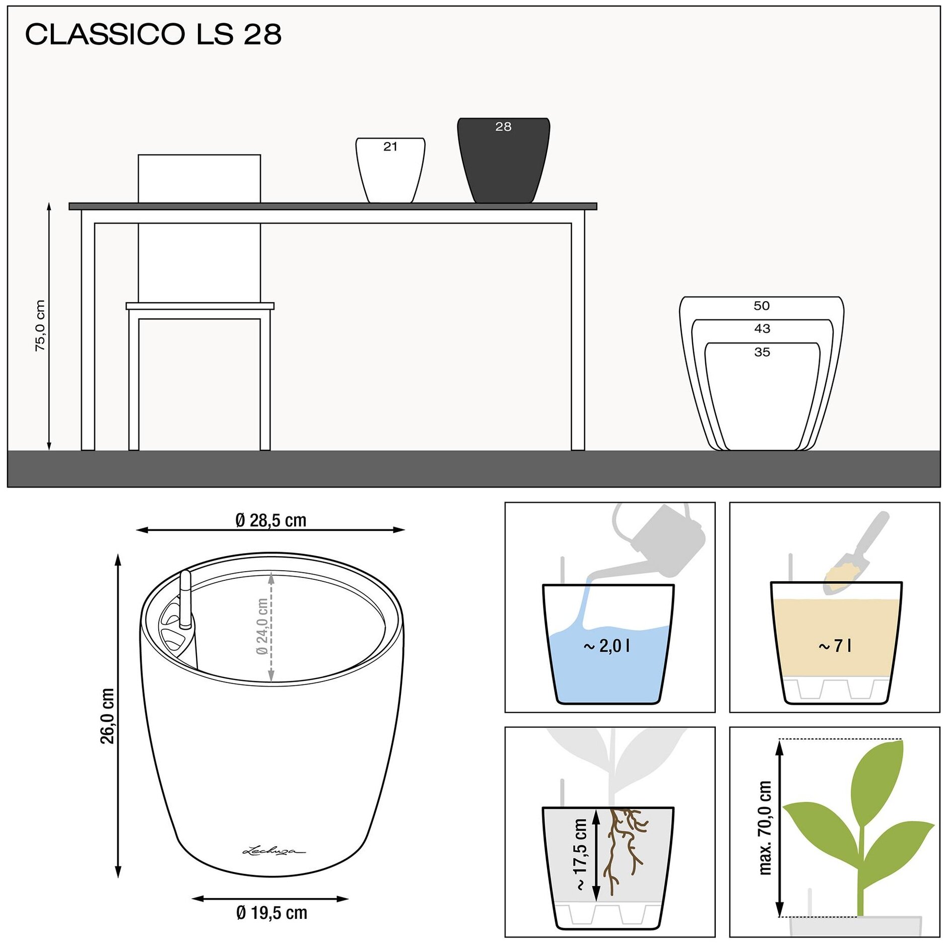 Настольное кашпо с автополивом LECHUZA CLASSICO 28 LS, с субстратом в комплекте, пластик, белое, Д27,5 В26 см, 7 л