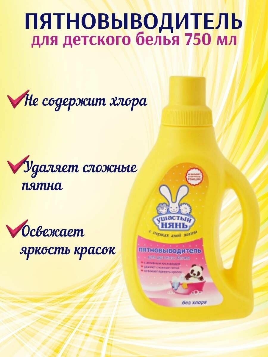 Пятновыводитель Ушастый нянь, для детского белья, жидкий, 750 мл/Гипоаллергенный с первых дней жизни