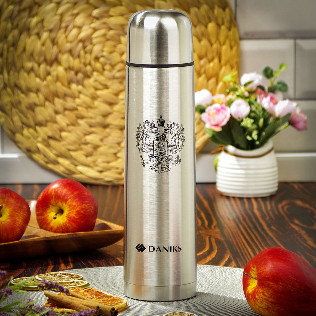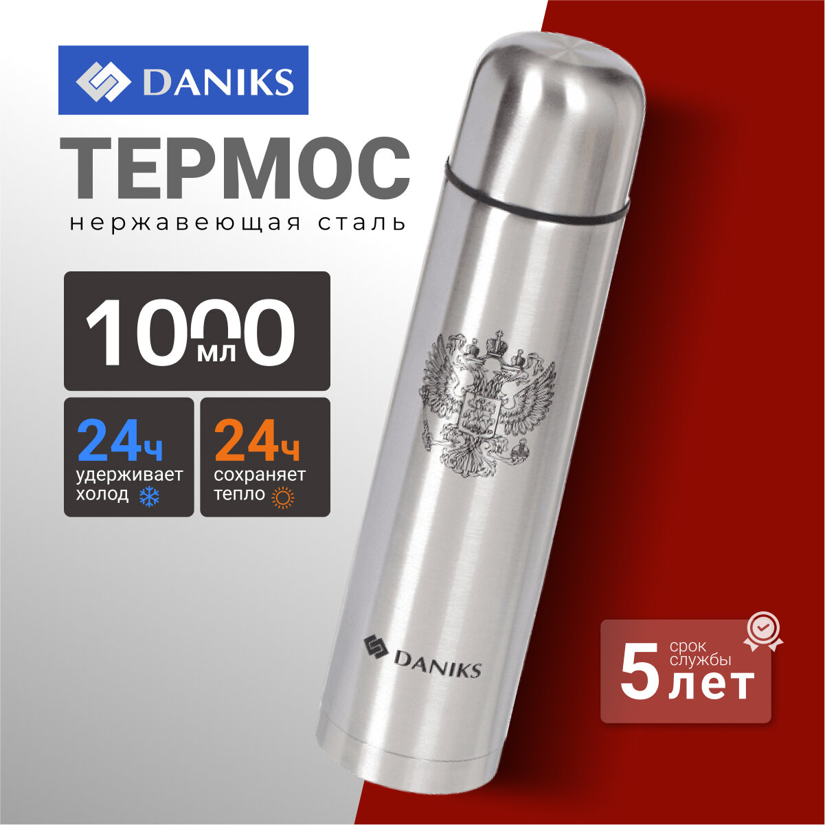 Термос из нержавеющей стали Daniks SL-100Z серебристый с узким горлом, 1 л интересное: