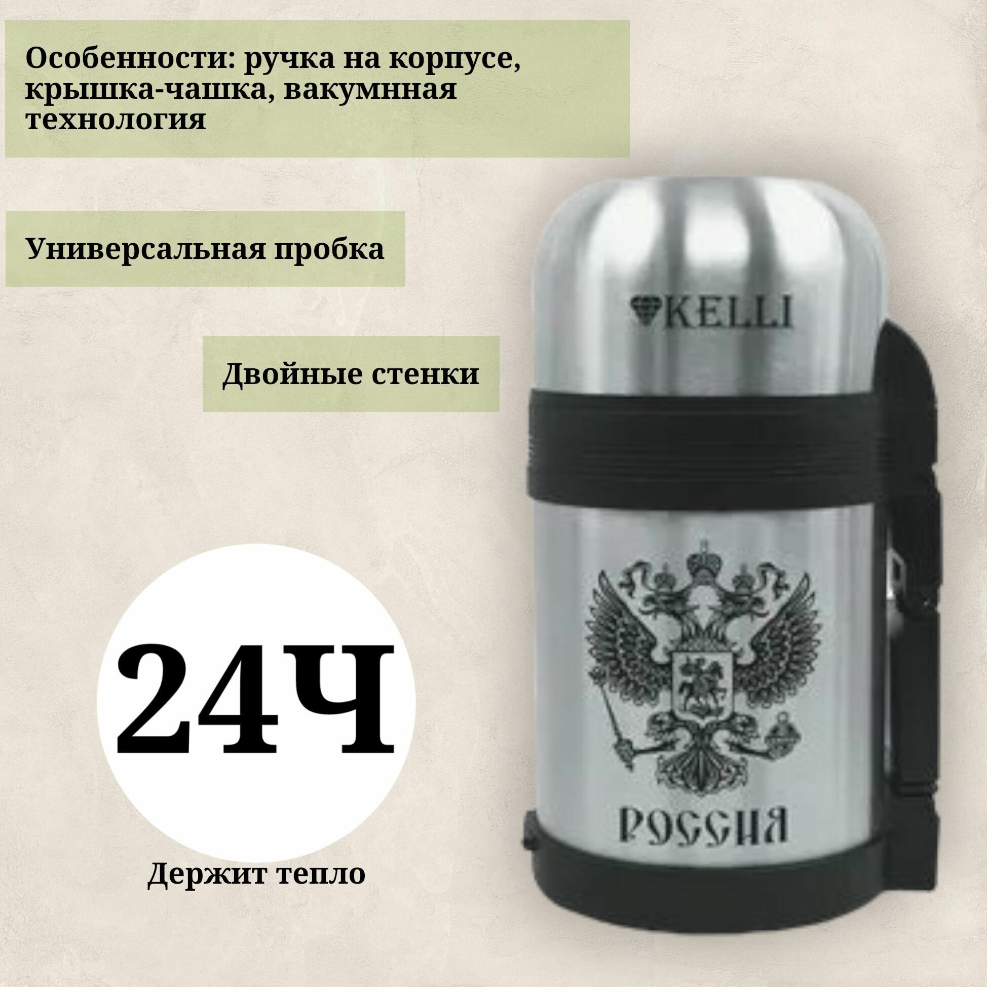 Классический термос Kelli КТ-0911, 1 л, серебристый