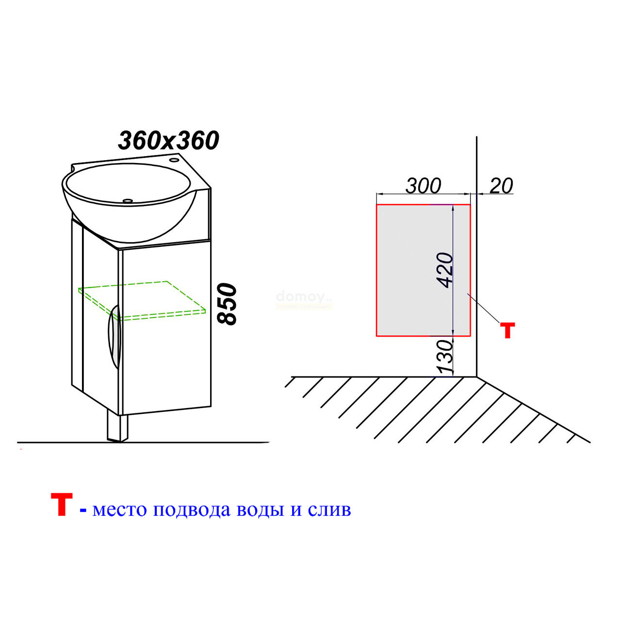 | Отзыв: | Советую к этой тумбе и раковине купить угловую полочку. Что мы и сделали.
