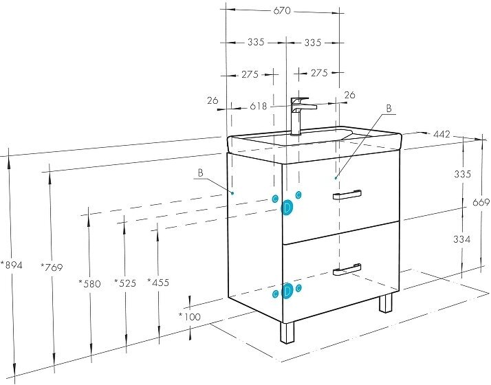 Тумба для ванной комнаты квадро 1-65