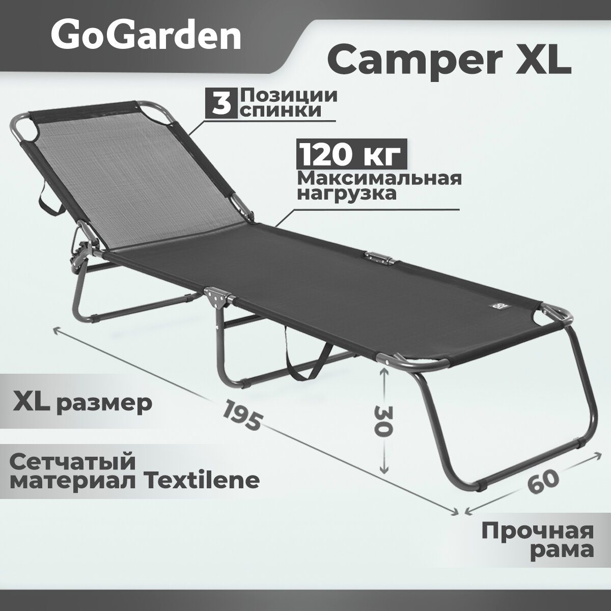 Раскладушка Gogarden CAMPER XL садовая, 195х60х30 см интересное:
