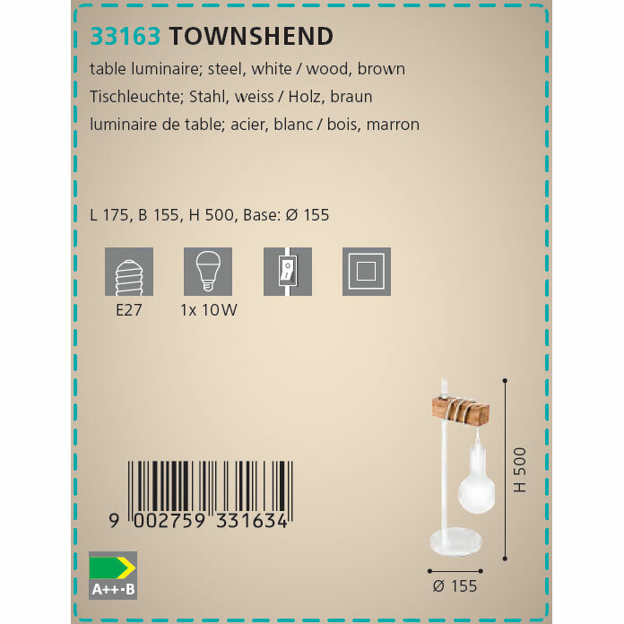 33163 Настольная лампа TOWNSHEND, 1х10W (E27), L175, B155, H500, сталь, белый/дерево, коричневый