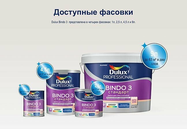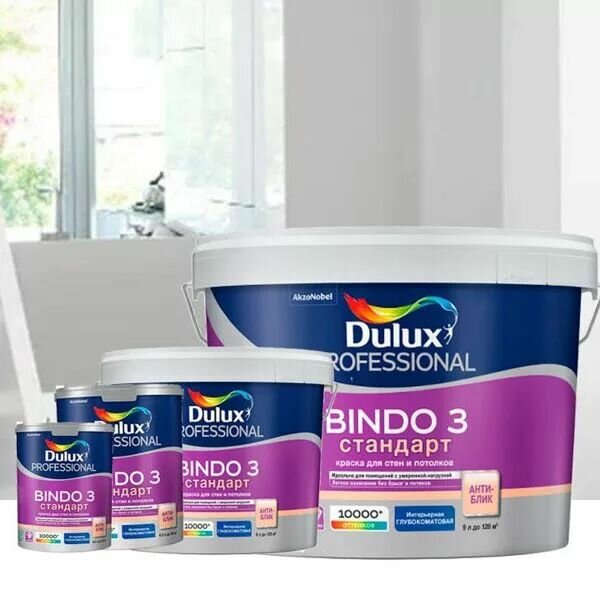 Краска Dulux Bindo 3 стандарт для стен и потолков, антиблик, глубокоматовая, база bc, 9 л 5309392