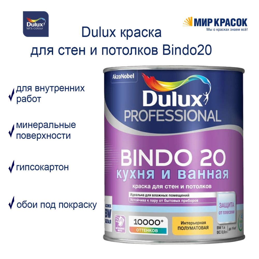 DULUX BINDO 20 кухня И ванная краска для стен и потолков, полуматовая, база BW (9л)