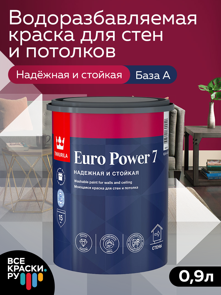 Купить TIKKURILA EURO POWER 7 краска моющаяся для стен и потолка, матовая, база A (0,9л)